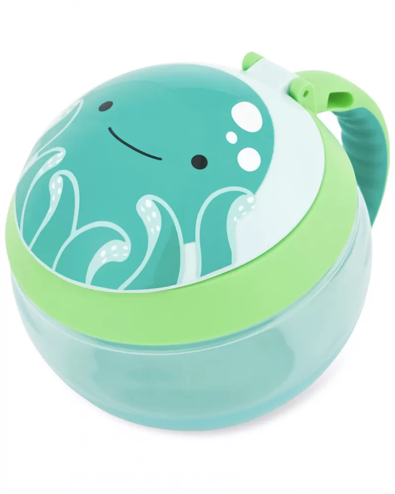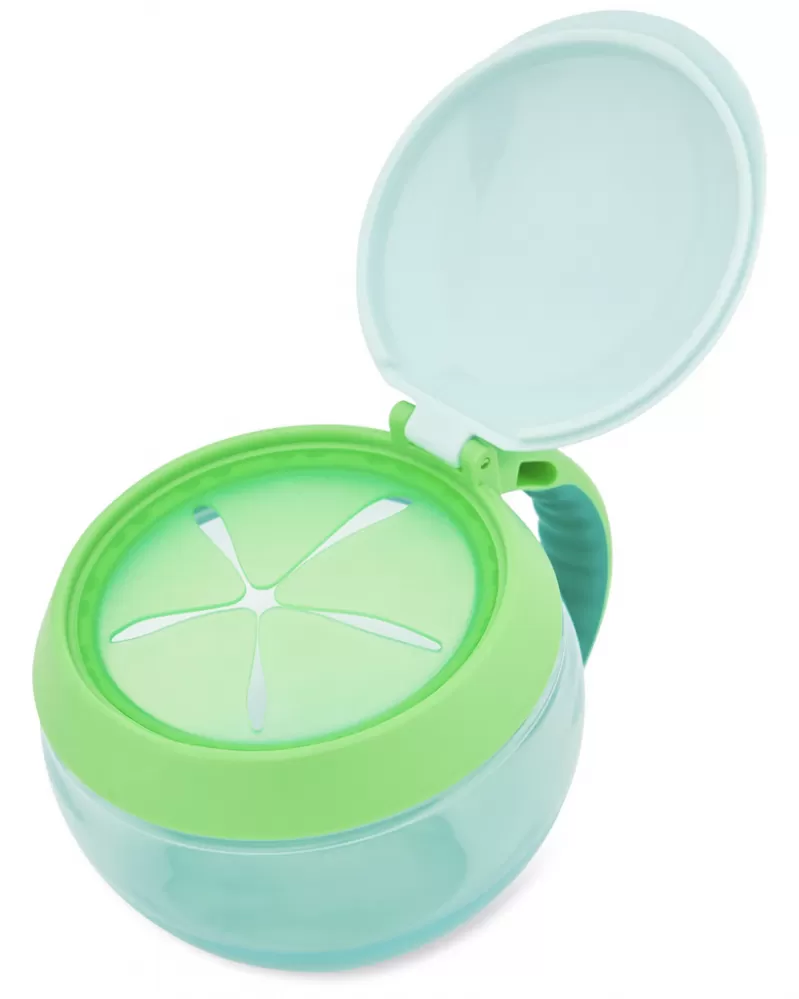 Šikovný nápad na cesty. Nádoba má víčko, které po otevření drží, před vysypáním obsahu jej chrání pružné lamely, které pustí dětskou ručičku dovnitř, ale nepustí svačinu ven. Nádoba je průhledná, aby se mohla brzy doplnit. Na boku je praktické ouško v dětském rozměru, pomocí kterého lze nádobu připevnit i na kočárek či tašku. 0% BPA, 0% PVC, bez ftalátů. Obsah: 222 ml. Průměr: 10 cm Rozměry produktu: 12 cm x 9,4 cm x 8,8 cm VAROVÁNÍ: Tento výrobek vždy používejte pod dohledem dospělé osoby. Další varování a pokyny jsou uvedeny uvnitř. Před použitím si je přečtěte a uchovejte pro budoucí použití. Odstraňte a správně zlikvidujte všechny obalové materiály. Nepovolte dětem hrát si s obalovými materiály. Dodavatel: ags 92, s.r.o., Drahobejlova 2515/18, 190 00 Praha Česká republika info@ags92.com